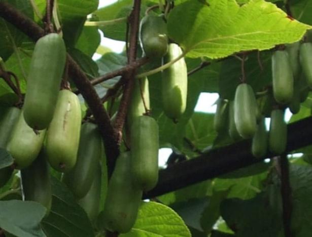 Красивое растение-лиана высотой около 7 метров с некрупными оливково-зелеными неопушенными листьями. Побеги средней длины, зеленые так же неопушенные, вьющиеся, не имеют шипов. Актинидия Вафельная уживается в соседстве с растениями крупномерами. Для сорта характерны средние сроки созревания плодов. Ягоды сильно удлиненные эллиптической формы весом до 3- 3,5 г. Цвет может различаться от нежно-оливкового до оливкового насыщенного в зависимости от места произрастания и степени затененности участка. Вкус сладкий. С одного куста за лето собирают около 0,8 кг ягод. Растение морозостойкое, нуждается в опылении мужскими растениями