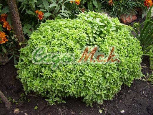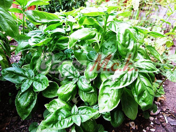 Привлекательное растение высотой 30-40 см. Листья оливково-зеленые с пурпурными жилками, гладкие, с приятным ароматом корицы, содержат много витаминов и минеральных веществ. Используют в качестве приправы к фруктовым салатам, сладким пирогам, желе, хорошо сочетается с мясными и рыбными блюдами. Базилик обладает тонизирующими свойствами, улучшает пищеварение. Выращивают рассадным способом или прямым посевом в открытый грунт. Посев на рассаду производят в конце марта – начале апреля. Посев в грунт в мае или начале июня. Высадка рассады в грунт – начало июня. Схема посадки 30x30 см. Предпочитает хорошо структурированные, богатые гумусом почвы. Нуждается в регулярных поливах.