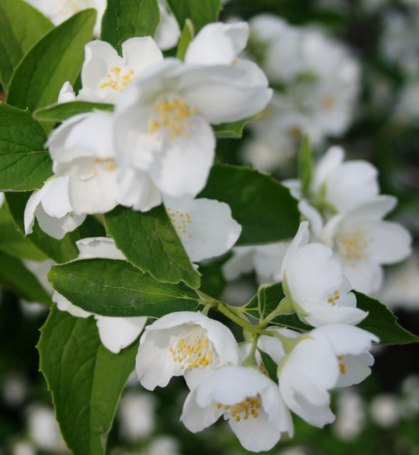 Чубушник Moonlight - куст высотой до 1,5 м, с красноватыми побегами. Цветет до 25 дней. Цветки не крупные, густомахровые, зеленовато-снежно-белые, собраны в соцветия. Отличаются тонким, земляничным ароматом.