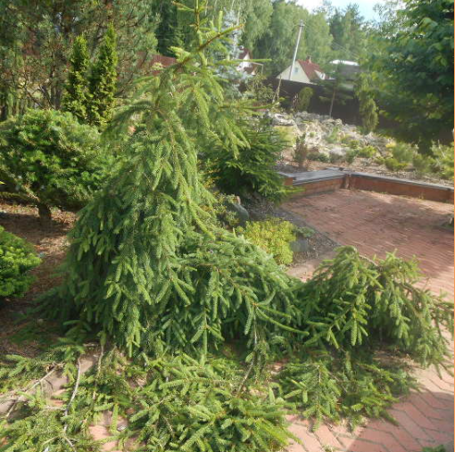 Ель обыкновенная Loreley - плакучая форма.Форма висячая, компактная,медленнорастущая, с великолепным стелющимся, разползающимся "шлейфом". Ствол более или менее дугообразный; нижние сучья стелются по земле. Высота растения зависит от высоты прививки и способа подвязки побегов. Максимальная высота может достигать 6 м. Хвоя длиной 1 - 1,6 см, достаточно жёсткая, зелёная (молодые приросты - нежно-зелёного цвета). Шишки небольшого или среднего размера, яйцевидной формы, коричневые; образуются на концах побегов.