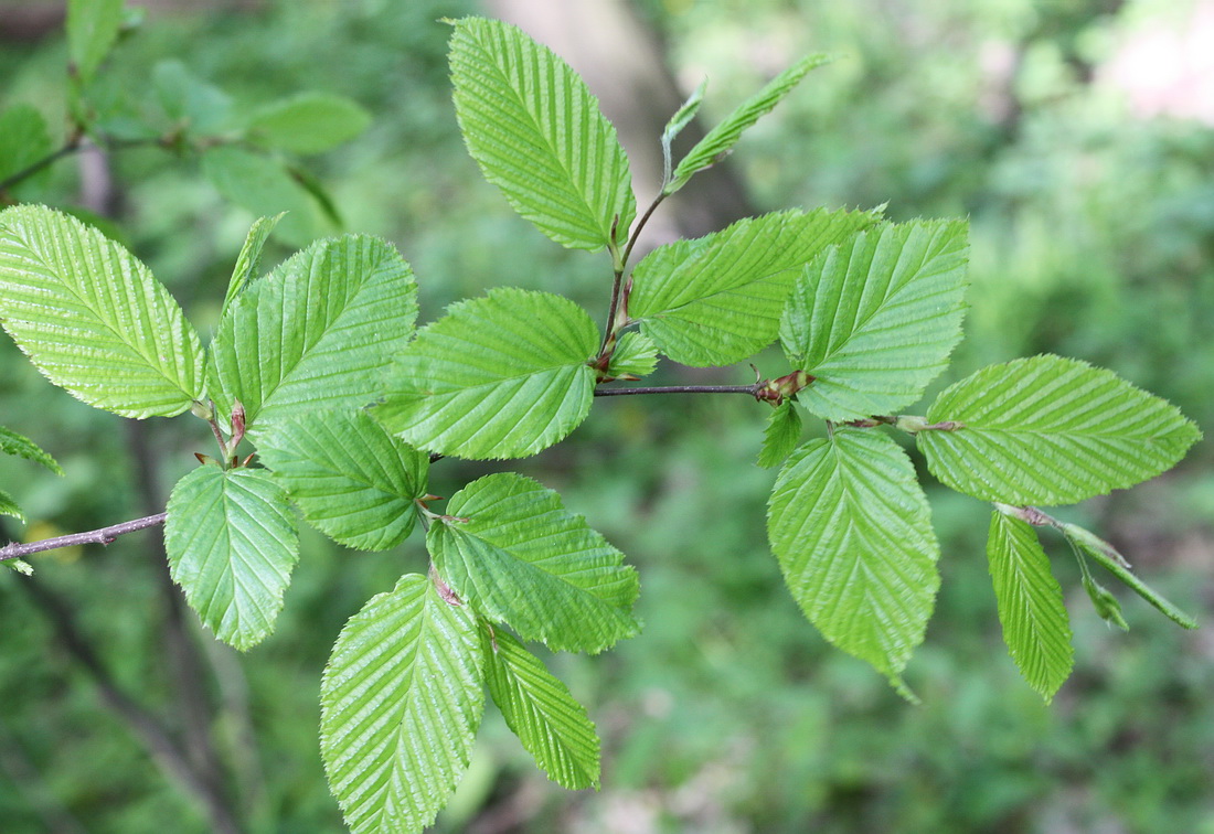 Граб обыкновенный - дерево высотой 7—12 м, в редких случаях до 25 м. Ствол диаметром до 40 см, ребристый, иногда слабо скрученный. Крона очень густая, цилиндрическая, на вершине закруглённая. Кора молодых деревьев серебристо-серая, с возрастом глубоко растрескивающаяся. Ветки тонкие, длинные; краевые весной свисающие, летом прямые; молодые побеги бурые, с чечевичками, голые или рассеянно волосистые. Почки острые, узкие, длиной 5—8 мм. Листья овальные или продолговато-овальные, заострённые, в основании округлые или слабо неравнобоко-сердцевидные, длиной до 15 см, шириной 5 см, сверху тёмно-зелёные, плотные, почти голые, на черешках длиной до 15 мм.