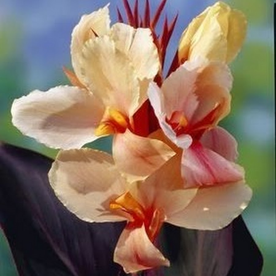 Канны карликовая Энджел Мартин (Angel Martin)-Миниатюрное растение, высотой 25 сантиметров. Цветки канны крупные, нежного розово-лососевого цвета. Их оттенок отлично гармонирует с фиолетово-пурпурной расцветкой листьев и стеблей. Цветение в июле-августе, размер цветка: 5-8 см.