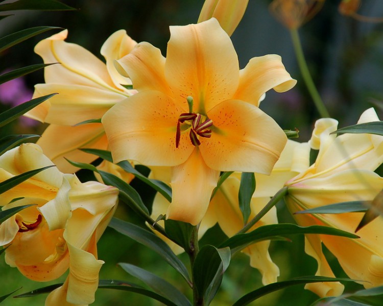 Лилия Eudoxia - элегантный новый сорт. Он наполнит ваш сад нежными красками и подарит продолжительное цветение. Цветки ароматные. У данного сорта форма цветка трубчатая. Он известный широко открытыми, обращенными наружу цветками. Цветки с волнистыми краями и темными контрастными тычинками. Лепестки окрашены в абрикосовые и дынные тона с молочно-белыми краями. Цветки «смотрят» в стороны или вниз. Размер цветка – от 7,5 до 15 см. Эта лилия производит больше цветов на сильных стеблях по мере взросления. Цветки привлекают пчел и бабочек. Высота растения – около 120-180 см. Время цветения конец июля - начало августа.