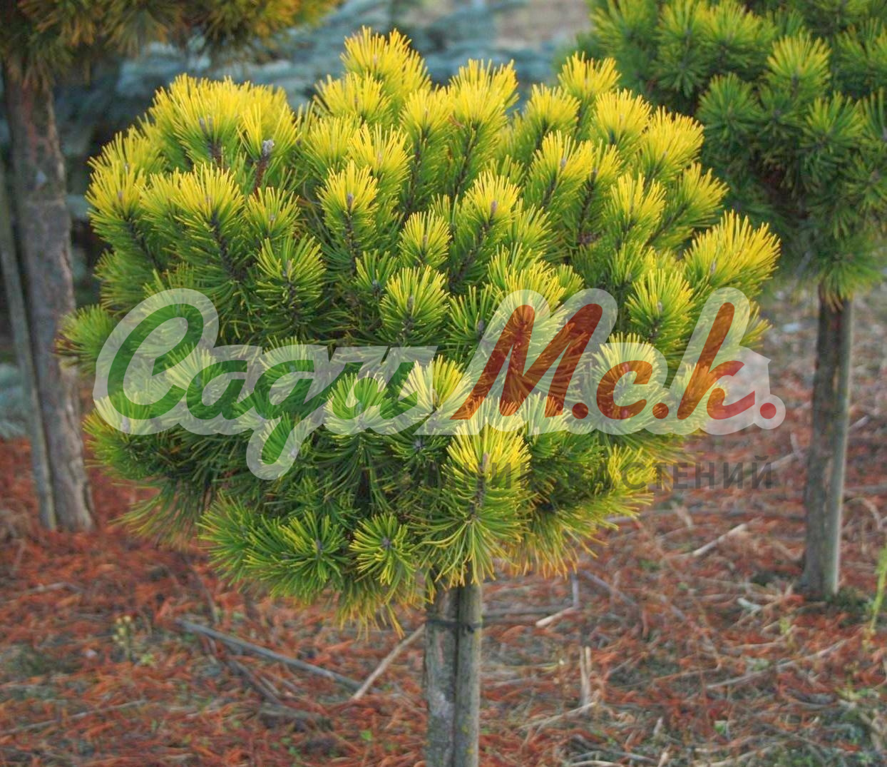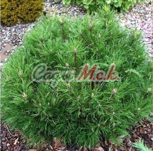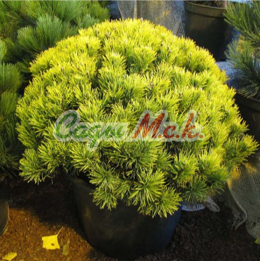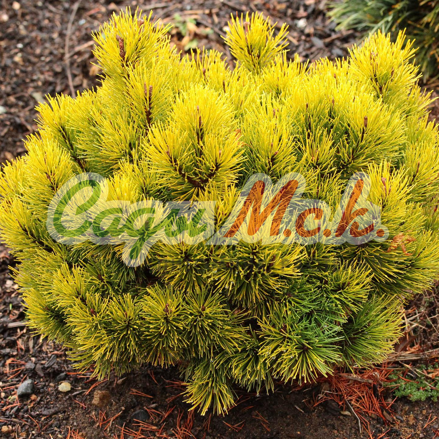 Сосна горная Carstens Wintergold - карликовый хвойный кустарник с плотной, шаровидной, компактной кроной и декоративной хвоей. Растет очень медленно (6-7 см в год), достигает 0,7 метра в высоту и 1,2 м в диаметре. Хвоя короткая, жесткая, блестящая. Летом хвоя темно-зеленая, осенью желтеет и становится золотисто-желтой с медным оттенком.