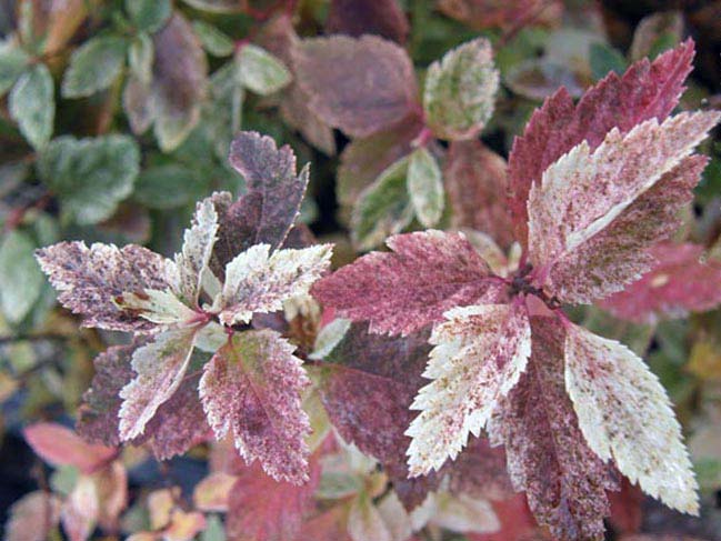 Спирея Вангутта Pink Ice - раскидистый кустарник с дугообразно изгибающимися вниз ветвями. Высота растения - 2 м, диаметр кроны - 2 м. Листья белые в зеленую крапинку, молодые приросты нежно-розовые. Цветет в мае-июне, цветки чисто-белые, в густых, многочисленных, полушаровидных соцветиях, густо покрывающих весь побег. Рекомендуется для групповых и солитерных посадок.