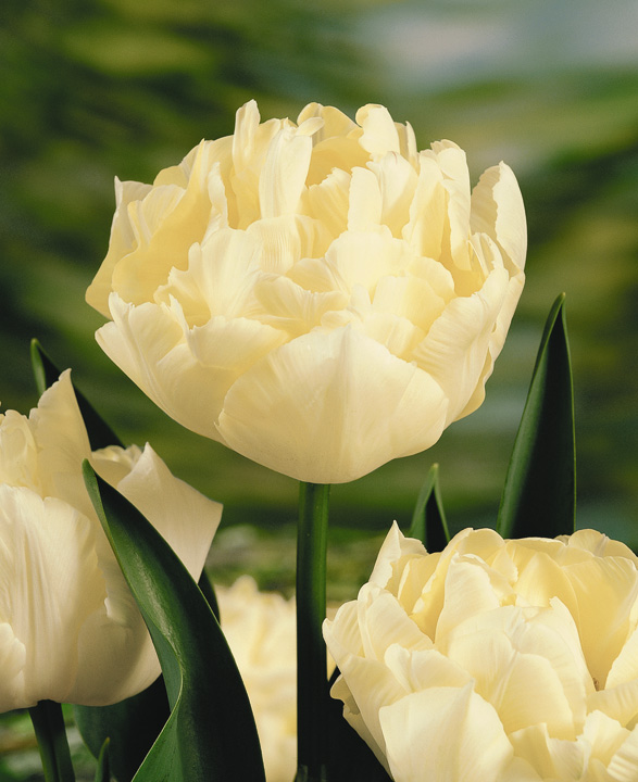 Тюльпан Verona радует глаз очень нежными цветками. Цветет в начале-середине сезона. Цветки светло-желтые, с махровой формой, хорошо наполненные. Внешние лепестки с зелеными отметинами. Бутоны изящной бокаловидной формы. Они возвышаются на невысоких крепких стеблях. Поэтому этот цветок будет гордо противостоять апрельским дождям. Цветки долго не увядают. Размер цветка в раскрытом состоянии – 8-10 см в диаметре. Листья гладкие, сине-зеленого цвета. Высота растения - около 50 см.