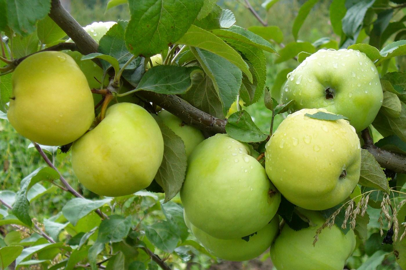 Саженцы яблони Антоновка обыкновенная относятся к зимостойким сортам. Дерево высокое, крона овальная, ветви тянутся вверх. Побеги коленчатые, кора коричневого окраса. Листья удлиненные, темно-зеленые. Цветки крупные с лепестками розового оттенка. Плод средний, округлой формы, гладкий, зеленовато-желтого оттенка без покровного окраса. Мякоть кисло-сладкая, сочная, с характерной кислинкой, зрелый плод очень ароматный.