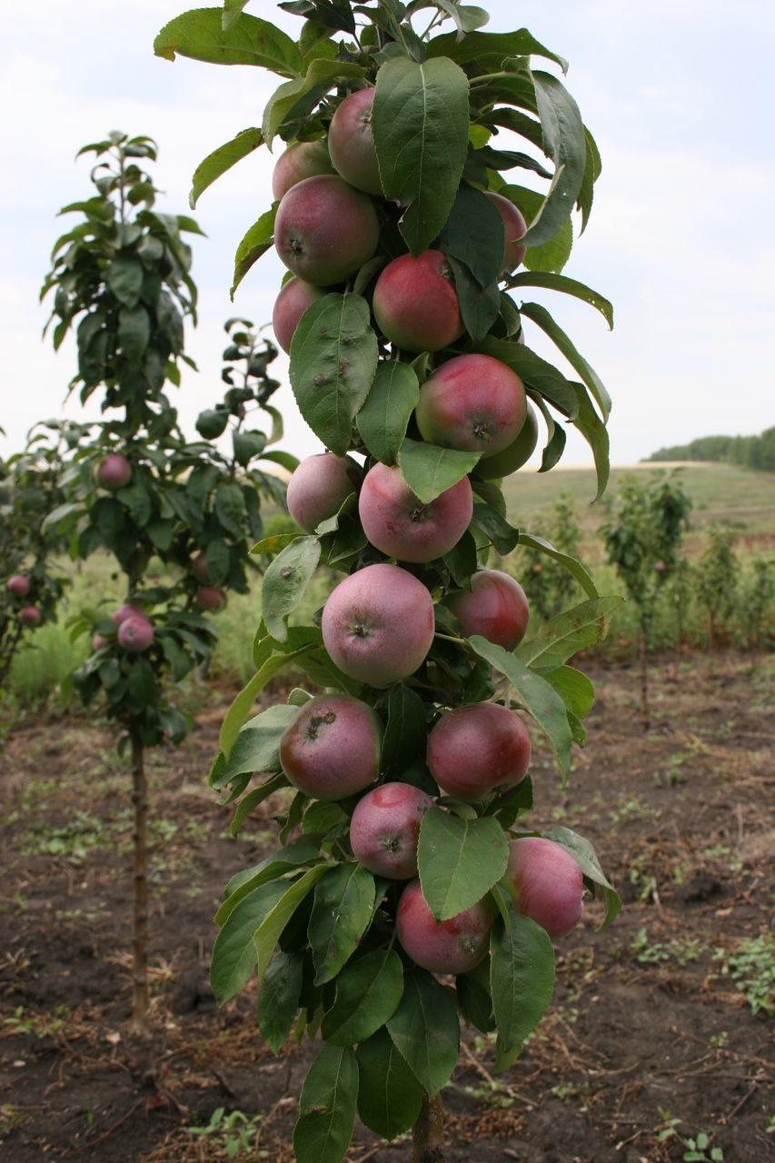 Саженцы колоновидной яблони Останкино принадлежат к сортам, устойчивым к заболеваниям. Дерево низкорослое, компактное, ствол прочный, выдерживает обильные урожаи. Плод средний, ярко-желтого оттенка с красным румянцем. Мякоть сочная, кисло-сладкая, структура мелкозернистая.